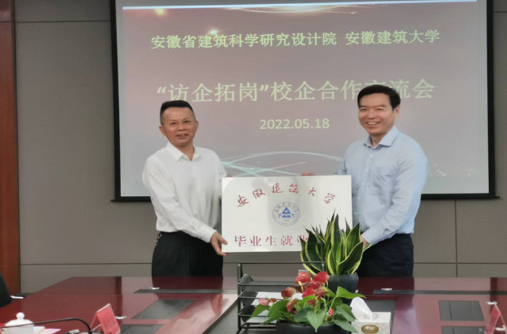 随后双方围绕毕业生招聘、人才培养、产学研合作等方面开展了深入交流。会后,双方举行了毕业生就业基地授牌仪式,并实地参观了绿色建筑与装配式建造安徽省重点实验室。(作者:侯晓云 审稿:谢发之)