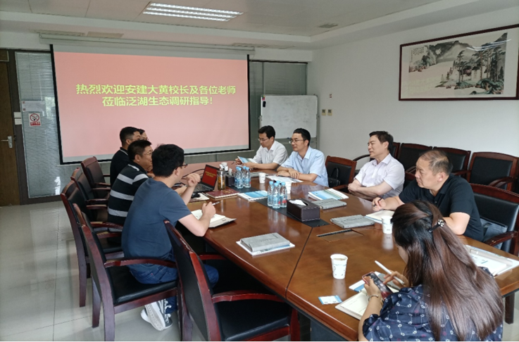 本网讯 7月22日,校党委副书记、校长黄显怀率环能学院相关负责人赴安徽泛湖生态科技股份有限公司开展访企拓岗促就业工作暨产学研合作座谈交流。安徽泛湖生态科技股份有限公司董事长王淦、公司技术骨干参加座谈交流。