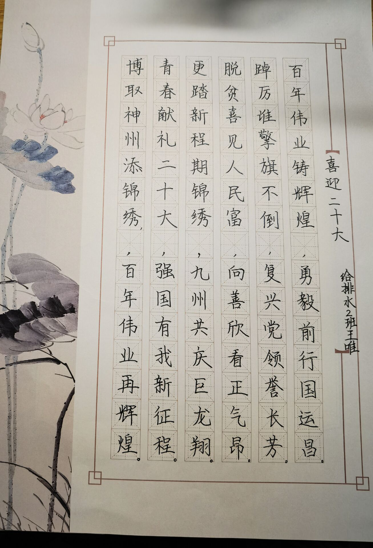 本网讯 翰墨颂盛世,丹青歌盛会。为迎接党的二十大胜利召开,进一步营造积极向上、多姿多彩的校园文化氛围。近日,环能学院举办了为期五天的“喜迎二十大·翰墨颂党恩”主题书画比赛。