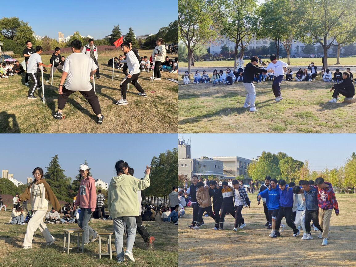 此次活动由四个游戏环节组成,第一部分是蒙眼互打游戏,在双方队员就位后,戴上眼罩,双方原地转五圈后开始游戏。游戏过程中拉近了彼此之间的距离,提升了彼此的信任度。第二部分是添字游戏,主持人任意给出一个字,每个小组成员在原字的基础上添笔画形成新字,新字最多的小组获胜。通过小组成员的集思广益,笔画不断变化,锻炼了学生思维能力,增强了团队精神,也彰显了当代大学生的青春活力和齐头并进的精神气儿。第三部分是抢板凳游戏,参加人员在凳子外围成一圈,按照主持人指示抢板凳坐下,这个环节在于锻炼同学们的协调平衡能力,增强灵敏性。在一阵阵的欢声笑语中,全场的氛围被调动起来,将此次的活动推向高潮。第四部分是十人九足游戏,团队成员脚系在一起,跑向终点,该环节中培养了同学们的反应能力和合作能力,增强同学们之间的亲密感,让彼此更加熟悉。