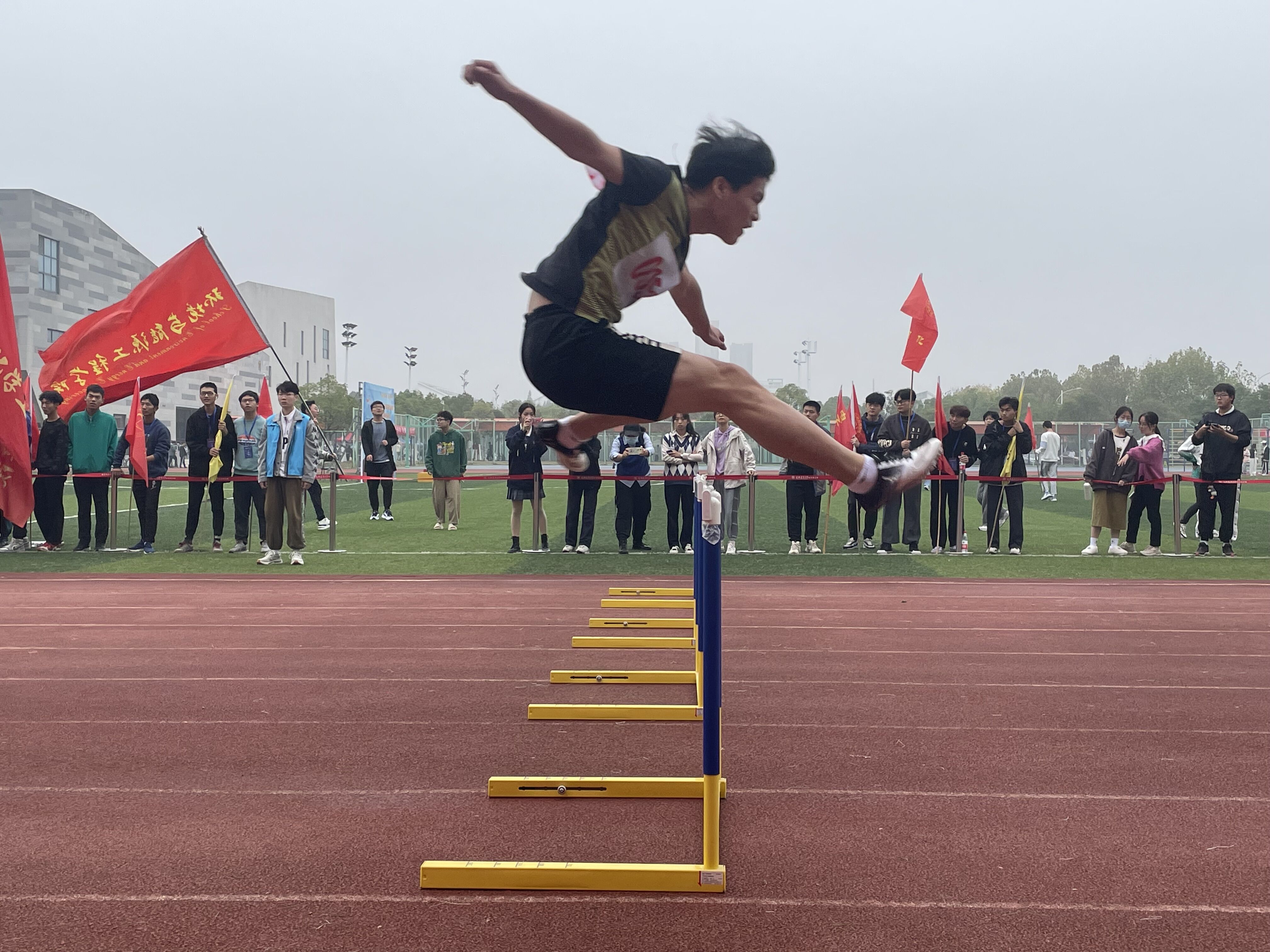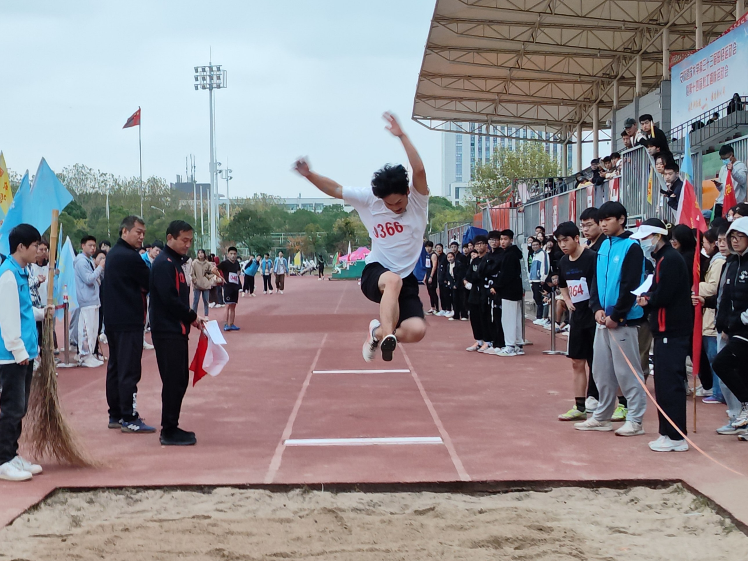 微寒的西风冲刷着奔腾的跑道,矫健的步伐谱写着青春的诗篇。环能健儿们在赛场中挥洒汗水,奋勇拼搏。枪声一响,如离弦之箭冲向终点;沙坑一跃,空中走步表演引起阵阵惊叹;铅球一抛,坚实的落地昭示着胜利的到来。一举扬名鸿鹄志,几番拼搏曙光迎!环能健儿们为挑战自我而奋斗,为集体誉而拼搏!22给排水专业王佳妮同学初生牛犊不怕虎,以133的成绩创造了我校女子跳高新纪录,同时斩获女子甲组400米、4×100米接力、4×400米接力、4×400米混合接力等多项冠军;19建环乔占祥连续四年追逐体育梦想,前三年默默无闻,终于在大学最后一年,作为替补跳高队员获得了上场机会,并一举夺得男子乙组跳高冠军。各位运动健儿完美的诠释了环能风采,发扬了环能精神, 鼓舞和激励着各位环能学子踔厉奋发、不懈奋斗。