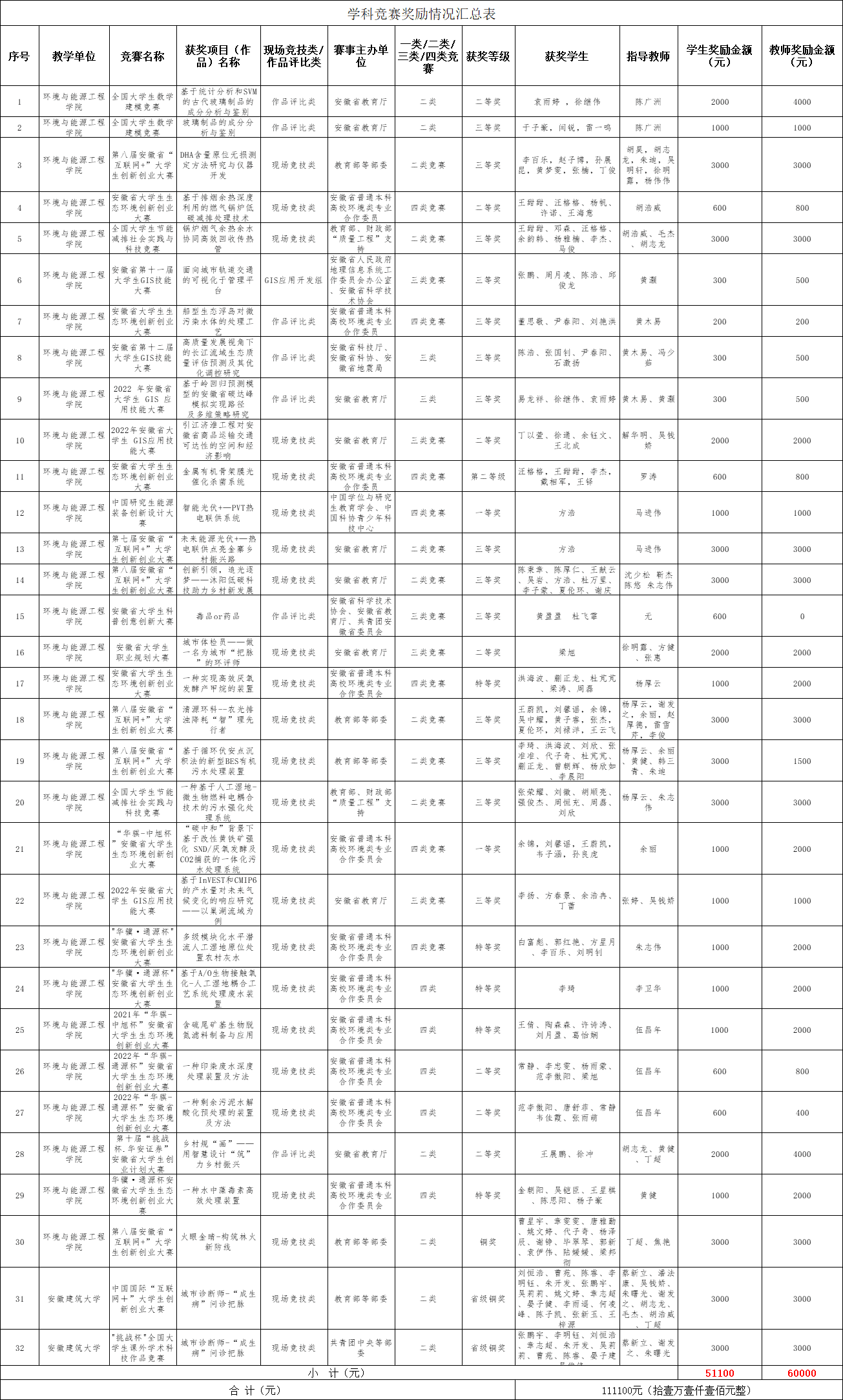 环能学院2022年度学科竞赛奖励认定情况公示
