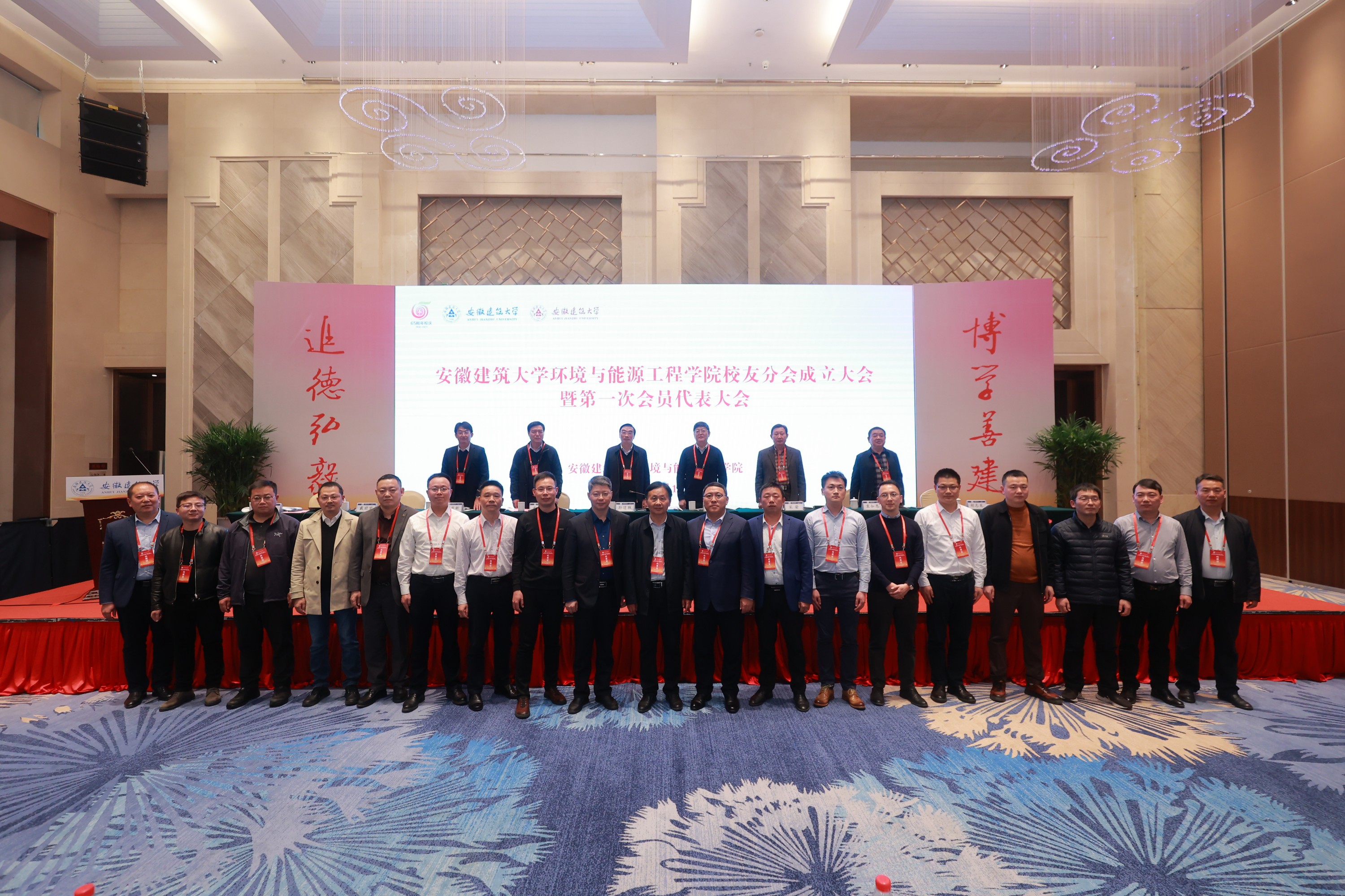 会后,全体参会人员合影留念。环境与能源工程学院全体师生定将以校友分会成立大会为契机,进一步凝聚校友力量,带着全体环能人的梦想,以矫健的身姿,昂扬的斗志在教育教学科研社会服务上奋勇前进,向着建设“国内一流、特色鲜明的高水平建筑大学”目标扬帆远航!(作者:朱迪;审稿:戴前宏)