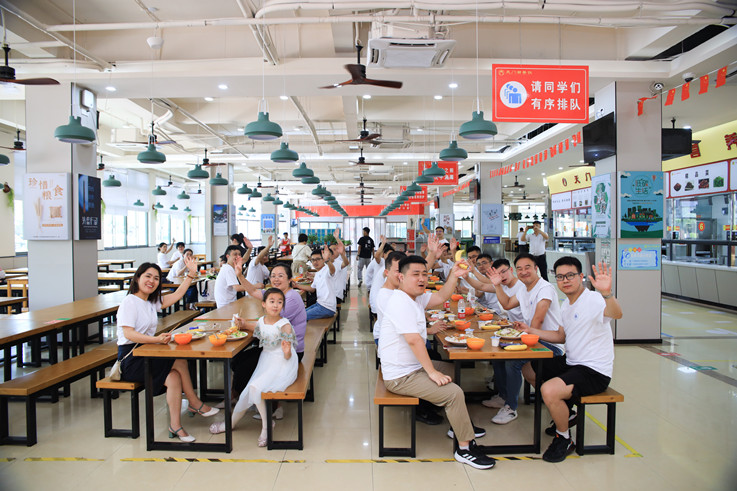 南苑餐厅中,同学们整齐列座,回味“母校的味道”。
