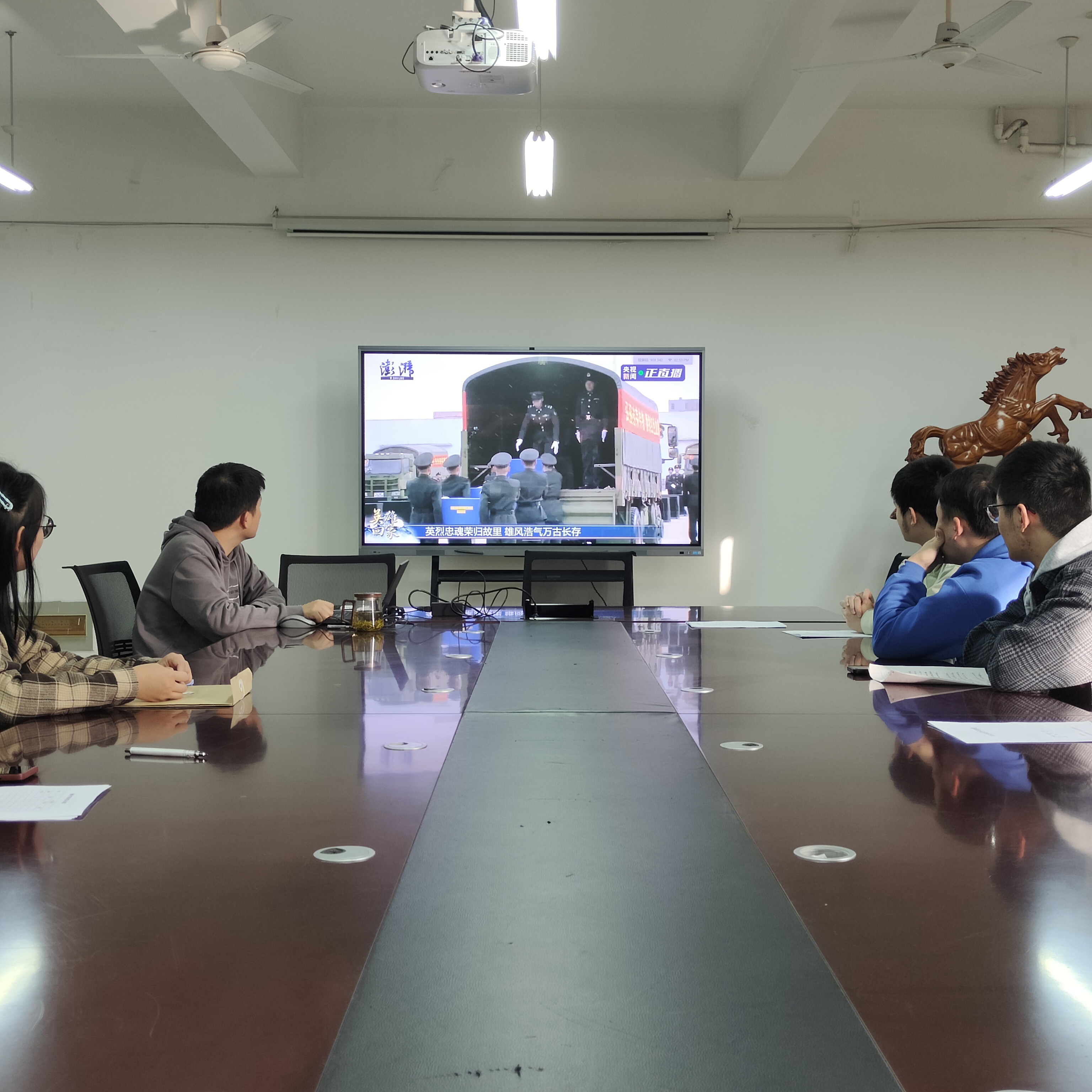 11月23日,第十批在韩中国人民志愿军烈士遗骸回到祖国怀抱,支部党员集中观看了烈士遗骸归国的视频。仪式现场庄严隆重,志愿军烈士遗骸的棺椁覆盖着鲜红的五星红旗,现场全体人员向烈士遗骸三鞠躬,以此表达对先烈们的深切缅怀和无限哀思。烈士遗骸,铁骨铮铮;烈士遗物,闪烁英雄精神。看完志愿军烈士遗骸安放的全过程,支部党员深受触动,大家纷纷表示,73年前,英雄的中国人民志愿军舍生忘死、浴血奋战,体现了舍生忘死的革命英雄主义和抛头颅洒热血保家卫国的革命大无畏精神。