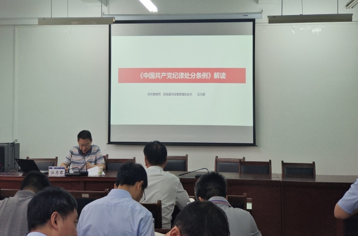 邀请学校纪委委员、实验室与设备管理处处长汪力君来院作《中国共产党纪律处分条例》专题辅导报告,引导党员们在新时代背景下,如何更好地将党纪内化于心、外化于行,真正做到心有所畏、言有所戒、行有所止。同时,注重发挥学院分党校的主阵地作用,在入党积极分子培训班、预备党员培训班中,为86名入党积极分子、20名预备党员做好新修订的《中国共产党纪律处分条例》培训,做到党校学员党纪学习教育全覆盖。引导学员自觉用党规党纪校正思想和行动,真正使学习党纪的过程成为增强纪律意识、提高党性修养的过程。