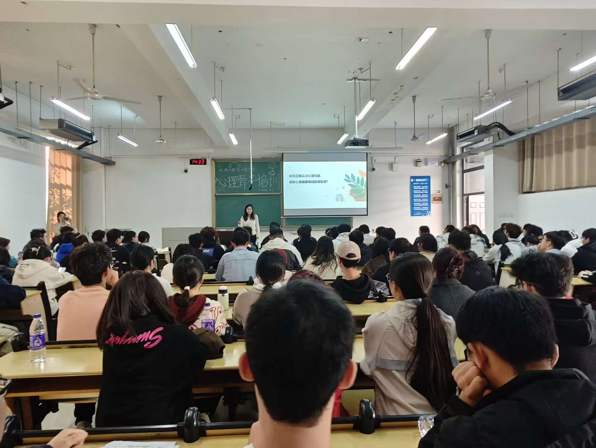 本网讯 为进一步加强心理健康教育学生骨干队伍建设,增强学生心理健康知识和技能储备,充分发挥朋辈心理互助作用和桥梁纽带作用,11月6日下午,环能学院在逸夫楼开展学生心理骨干心理危机的识别与干预能力提升培训,本次培训由学院心理辅导站副站长韩三青主讲,学院2022级、2023级、2024级心理委员和宿舍长参加本次培训。