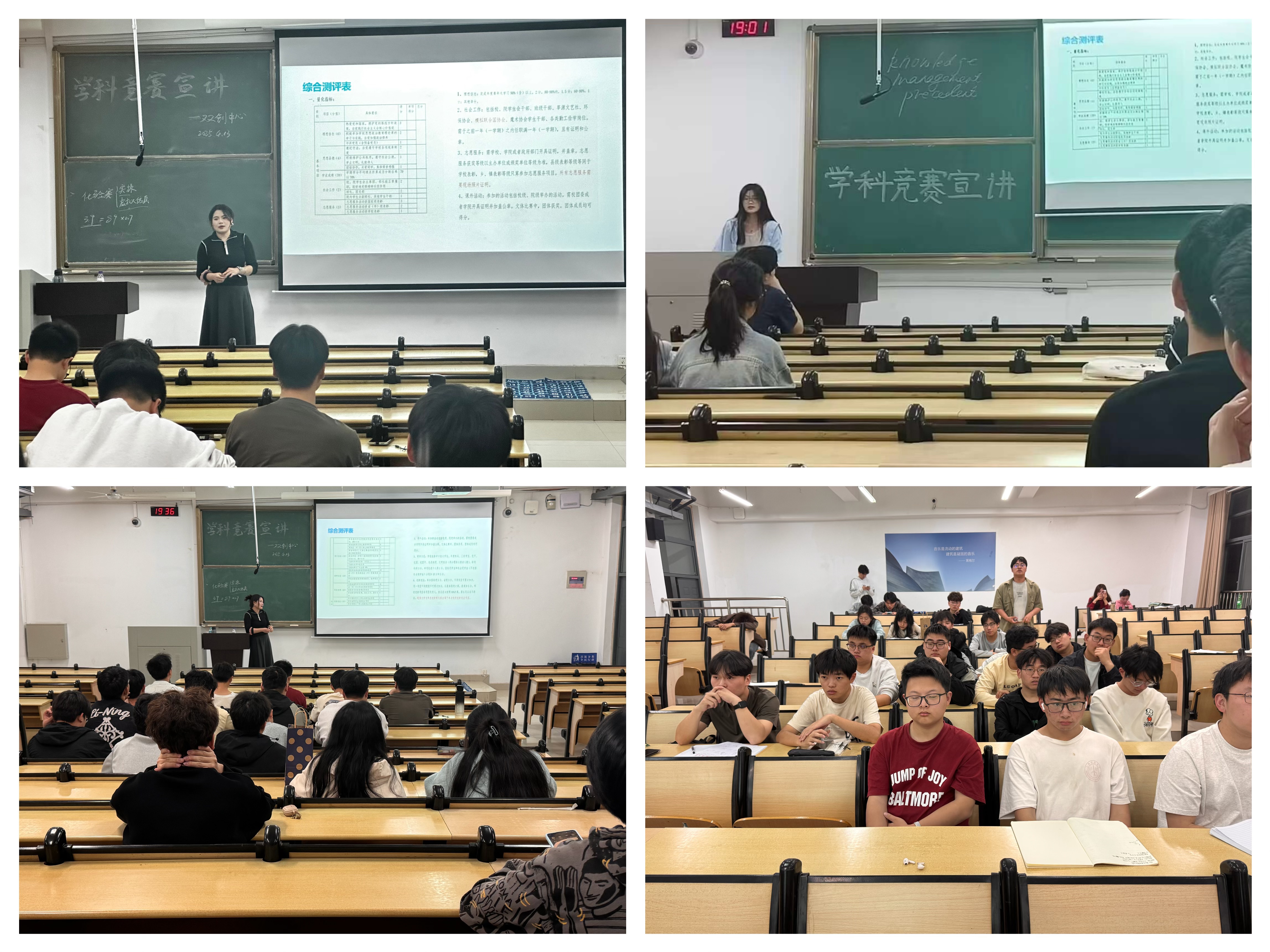 本次宣讲活动邀请了学院各专业在2024年各类学科竞赛上取得优异成绩的同学担任主讲,他们就竞赛项目、项目选择以及注意事项等内容进行详细解说。鼓励2024级同学为参与竞赛做好规划,同时也告诉大一同学,学科竞赛是一个展示自我才华的平台,也是追求自我理想的专业舞台,同学们要积极参于到学科竞赛和各项创新创业活动中,提升知识素养、提高综测成绩、丰富个人阅历。在交流互动环节,同学们较为积极踊跃,提出各类问题,讲解者有针对性地进行了回答,宣讲活动后,同学们纷纷表示通过本次宣讲让他们对学科竞赛有了更清晰的认识,也对自身的学业有了进一步的规划。