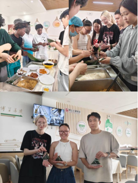 等待粽子在蒸锅中慢慢成熟的过程,被一场妙趣横生的端午知识问答填满。“端午节纪念哪位爱国诗人?”“除了粽子,端午节还有哪些习俗?”“‘五毒’指的是哪五种动物?”问题一出,现场立刻沸腾起来。中外学子们纷纷举手,踊跃抢答,中文夹杂着外语的解释,将现场气氛推向高潮。答对的同学不仅收获了关于传统文化的知识,还赢得了环保主题的精美小礼品,喜悦之情溢于言表。