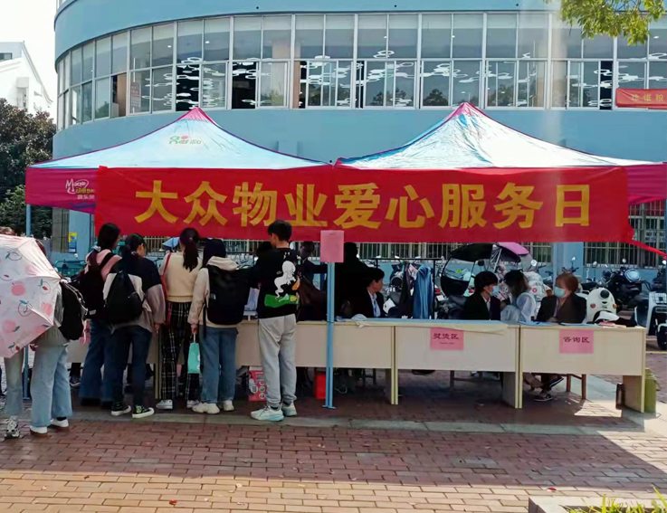 为深入推进“我为师生办实事”实践活动,根据后勤党总支的统一安排部署,10月27日,公寓中心组织南北校区物业分别在南校区紫云食堂广场和北校区1号公寓门前开展爱心服务日活动。