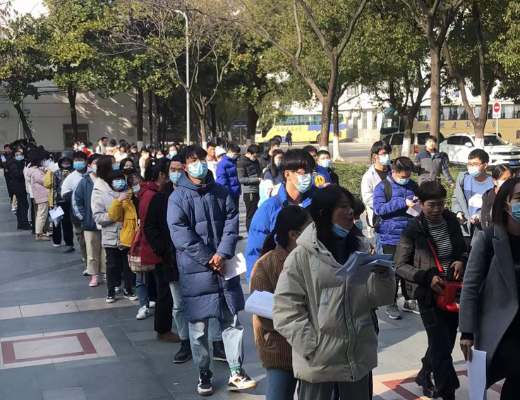 为落实皖招考[2021]48号文件精神,切实做好学校研考防疫工作,保障广大考生和考试工作人员生命安全和身体健康。12月23日,学校在南北校区同时启动核酸检测工作,本次检测对象为参加2022年研考(初试)的在校应届本科毕业生和全体考试工作人员。检测中,全体人员按照疫情防控要求,确保安全距离,有序排队等候和完成检测。
