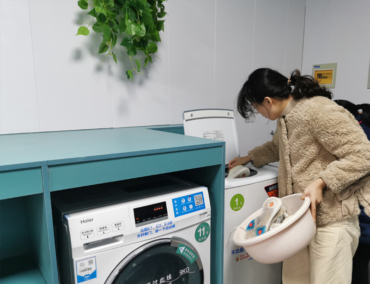 本网讯  春节假期,后勤服务集团利用15天时间,在南北校区共新建、改造76个洗衣房(间),投放洗衣机276台,烘干机33台,洗鞋机15台,饮水机148台。新建、改造后的洗衣房装修标准化,整洁干净、宽敞明亮,洗衣机、烘干机、洗鞋机、饮水机一应俱全,部分楼宇还配备了免费使用的熨烫机。