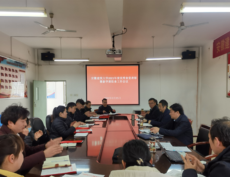 本网讯 2月25日,后勤服务集团在后勤综合楼会议室召开2021年度优秀食堂表彰暨新学期饮食工作会议。后勤服务集团及各餐饮公司有关人员参加会议。