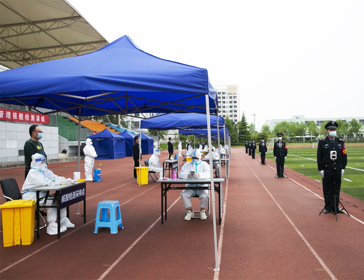 学校高度重视本次实战演练工作,根据《合肥市关于在划定区域开展疫情防控演练的通告》要求,在南、北校区分别设置6个核酸监测点,后勤集团按要求提前规范布置现场。