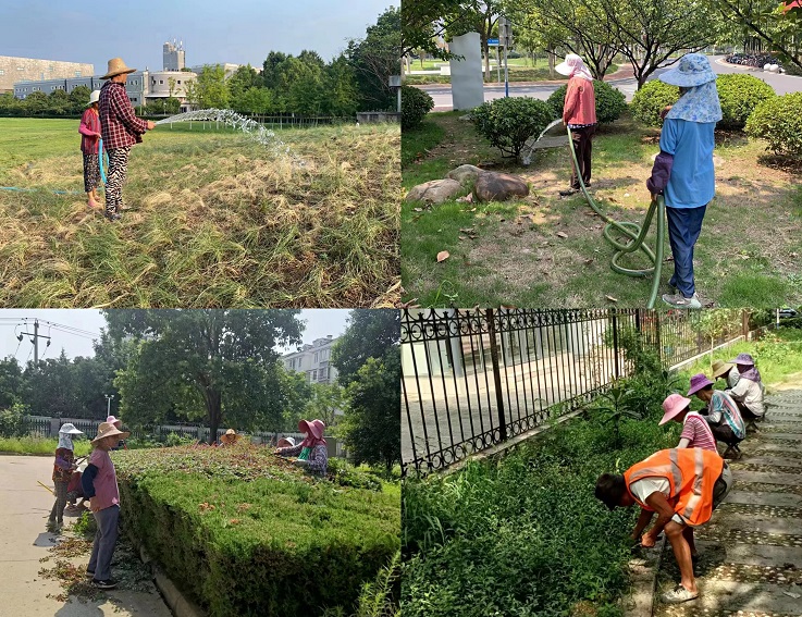 高温天气对校园各类苗木及绿化露天作业都是不小的考验。后勤服务集团科学合理安排浇水时间,避开高温时段,早晚采取细浇慢灌、浇足浇透的方法科学浇水,减少水份蒸发,防止浇水烧根现象,确保绿化美观。绿化工人们对乔、灌木、草坪等进行精细化修剪整形,炎炎烈日,他们汗流浃背,只为校园绿化更加整洁、美观。