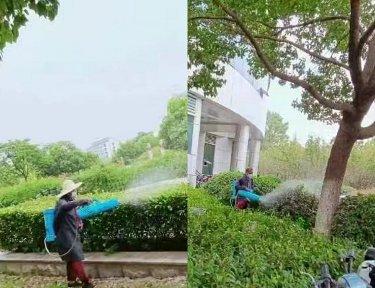 高温天气也是病虫害高发季节,后勤服务集团坚持“预防为主,防治结合”的原则,对树木病虫害实时观测,及时发现,及时处理,还对校区绿化带进行了灭蜂作业,保证了苗木健康生长与师生人身安全。