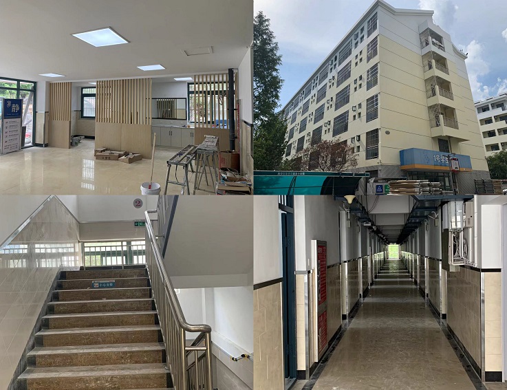 进一步改善和提升学生的住宿环境,集团维修部门人员及施工队伍战酷暑、斗骄阳、无惧高温“烤”验,在保证维修质量的基础上如期完成南校区1#、18#学生公寓及北校区8#、9#学生公寓维修改造,学生宿舍内外焕然一新。
