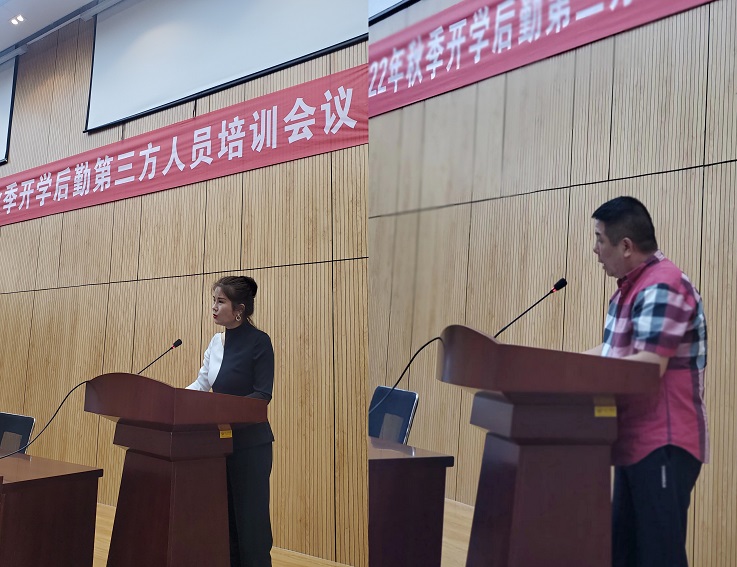 本网讯 8月25日,后勤服务集团在南校区实训综合楼报告厅召开2022年秋季开学后勤第三方人员培训会议,后勤服务集团领导班子、各中心负责人及各驻校服务企业负责人、项目经理参加会议。