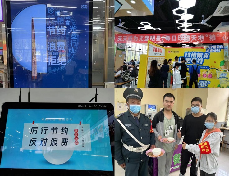 学校各食堂就餐大厅,通过悬挂标语条幅、电子投屏、宣传标识等形式进行节粮宣传,增强全校师生员工厉行节约、浪费的意识,倡导崇尚节俭、科学饮食、健康消费的生活理念和饮食习惯。本次活动得到师生和职工的积极参与,各食堂节粮宣传活动氛围热烈。光盘行动,你我同行,让节约内化为自觉,让文明成为习惯,使反浪费文化在校园蔚然成风。(文/图:程少聪;审稿:陈雷)