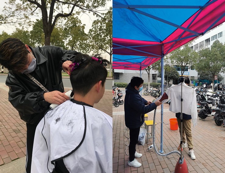 活动当天,工作人员早早便将场地布置完成。活动时间还没到,就有学生陆续前来咨询。本次活动南北校区各邀请了一名专业的理发师傅,用娴熟的技术和热情周到的服务赢得了参与师生的一致好评。