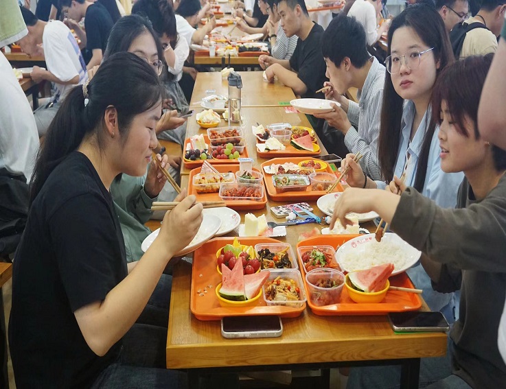 此次校庆美食节暨“校园十大最受欢迎菜肴”评选活动共持续七天,全校师生可以现场品尝各个食堂推介的十道菜肴,并通过线下和线上投票渠道参与评选。各食堂中午开餐时间有学生志愿者在活动现场进行发放,并当场收回投票;线上投票渠道在“安建大微后勤”公众号进行,赶快为你喜爱的菜肴投上一票!(文/图:程少聪 陈委婕;审稿:唐黎)
