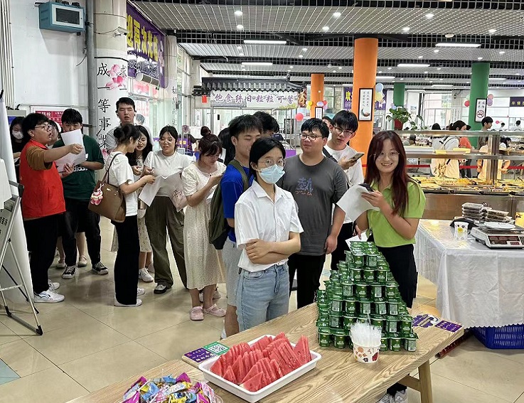 各食堂就餐大厅内,现场氛围喜庆、热闹非凡,各食堂分别把日常拿手的、学生喜爱的各类美食摆上展台,为师生们奉上了味美、新鲜、健康的美食产品,供师生们现场品尝并投票评选。同时,各食堂现场还设置了游戏体验区,供师生们参与游戏活动,积极加入美食盛宴。