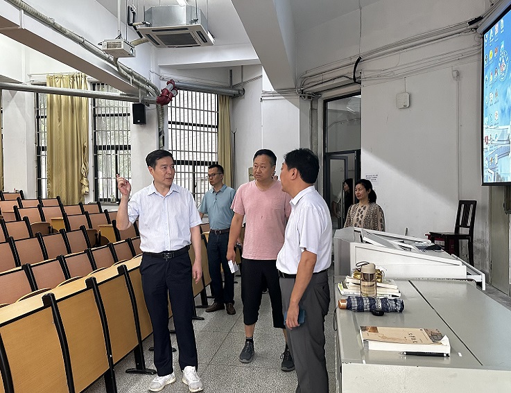 在新建篮球场、图书馆,黄显怀听取后勤集团负责人关于暑期篮球场建设及图书馆改造工作汇报,深入了解篮球场建设工序、图书馆改造内容。在学生自修室,亲切询问学生对图书馆改造的意见和建议,并对自习环境及桌椅配备提出指导意见。