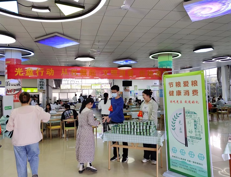 就餐大厅内,各食堂通过悬挂横幅、张贴海报、电子投屏播放等形式进行制止餐饮浪费宣传。由学生志愿者组成的光盘行动督导员小队,向同学们积极宣传“爱粮节粮、健康消费”活动理念,并劝导同学们成为光盘行动的一份子。同学们凭借光盘就可以在餐具回收处领取一份水果、酸奶或者小礼品,活动现场氛围热烈。爱惜粮食,杜绝浪费,让我们一起从现在做起,从自身做起,从点滴做起,让爱粮节粮的氛围在校园蔚然成风。(文/图:程少聪;审稿:唐黎)