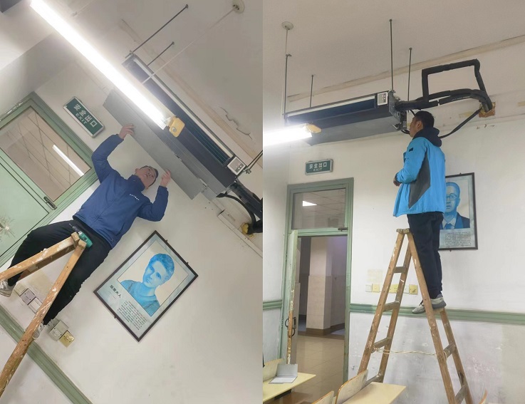 考试前夕,后勤管理处开展了考场内外环境及各类设施的检修工作。提前对考场的周边环境进行巡查,备用融雪剂、铲子等除雪设备,在易滑路段铺设防滑垫。安排专人认真排查课桌椅、照明、地砖、墙面、门窗、卫生间等设施,对教室、走廊、卫生间进行了全面彻底的清扫,调试了空调、电子钟、铃声、热水器等,以保障考试的顺利进行。此外,考试期间,提供徽学楼二层6间教室,供跨校区考生午休使用,并在各考场楼宇前设置暖心服务站,为学子们准备免费糖果、红糖姜茶、热水等,为考研学子驱散寒冷、加油打气。