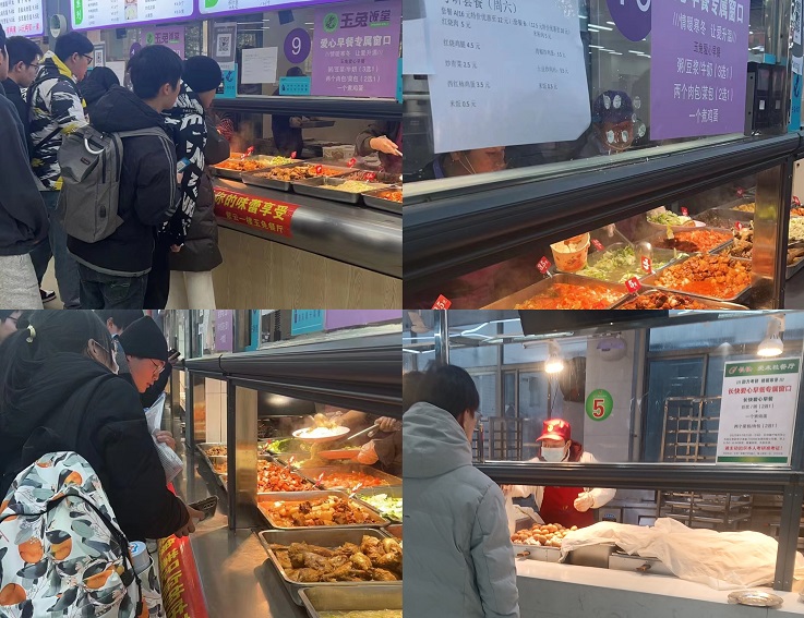 为帮助学子增强应考信心,学校各食堂推出爱心助考系列活动。考试期间,学生食堂为广大考生每日准备了免费爱心早餐一份,并在中餐推出优惠营养的考研套餐,供同学们选择。同时,食堂就餐大厅延迟关闭空调,为跨校区考生提供温暖舒适的休息场所,并免费提供红糖姜汤和开水等,让同学们御寒。