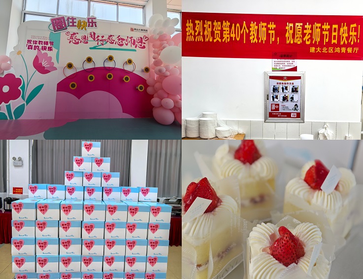 本网讯 为庆祝第40个教师节,让教师们过上一个温暖的节日,9月10日中午,后勤管理处在两个校区教工餐厅开展“感恩同行 感念师恩”教师节活动。