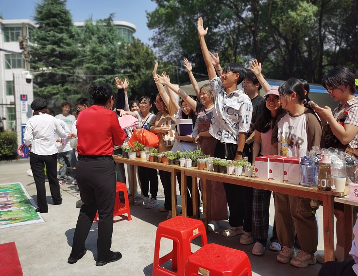 为做好服务日活动,工作人员提前谋划,做方案、采购物资、布置现场,有条不紊。紫云路校区开展了公寓安全主题宣讲,并设置手工区,同学们用创意手工作品,共迎国庆,庆祝祖国75周年华诞。金寨路校区开展安全知识问答活动,现场还有欢乐套圈、绿植领养等互动游戏,吸引了同学们的热情参与。