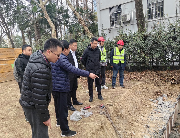 本网讯 2月22日,校党委书记马文革赴金寨路校区积水点治理工程现场检查指导工作,校办公室、保卫处、后勤管理处部门负责人陪同。