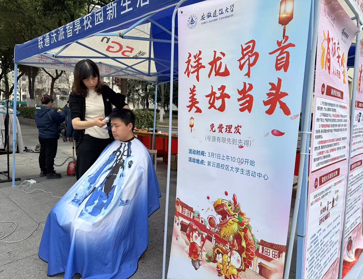 活动现场,免费理发服务点吸引了众多学生的关注。专业的理发师们手持剪刀,手法娴熟,为同学们修剪出清爽利落的发型。随着理发师的巧手舞动,同学们的面貌焕然一新,精神抖擞。一位刚理完发的同学兴奋地说:“学校组织的这次活动太贴心了!‘二月二龙抬头’,理个新发型,感觉整个人都更有活力了,也希望着新学期有个新的开始。”