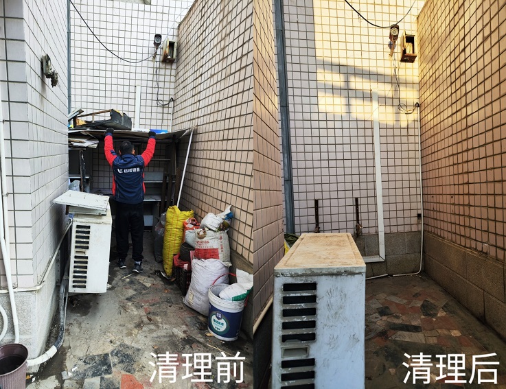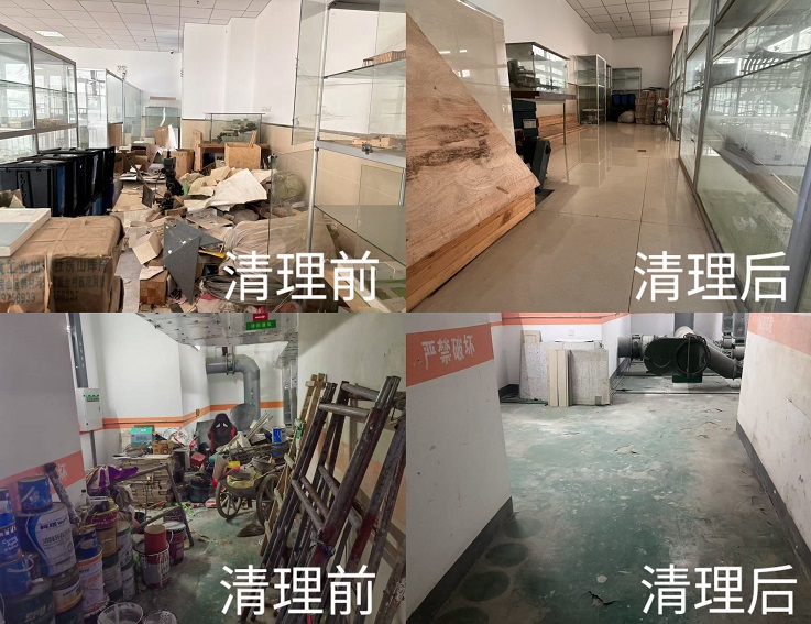 本次清理行动历时一个月,清运垃圾50余车,累计投入200余人次清理近50吨垃圾。行动中,充分发挥党员先锋模范作用,主动担当作为,重点对一些历史遗留和长期存在的卫生死角进行了攻坚。学生公寓共有11个地下室,因早年经营等原因,遗留了较多垃圾和杂物,存在一定的安全隐患。地下室因仅能通过楼梯进出,无法动用机械辅助清理,只能依靠人工一趟一趟地将堆积如山的垃圾和杂物抬出。部分楼宇遗留了较多的建筑垃圾,部分区域杂物无法确认是否可以清理,后勤管理处主动作为,积极对接学院和相关职能部门进行现场确认,确保应清尽清。