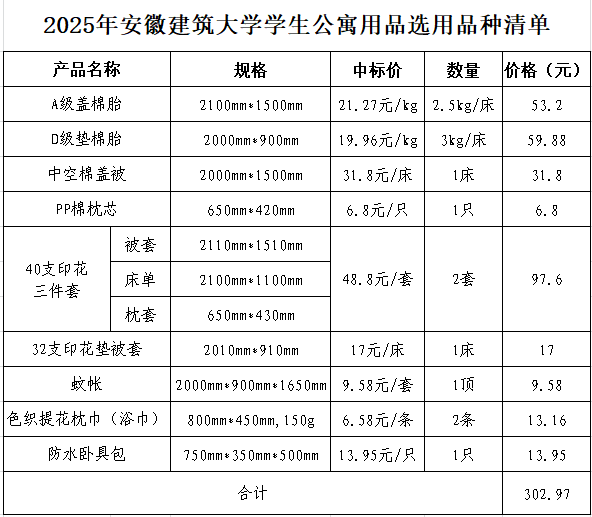 https://www.ahtba.org.cn/site/trade/affiche/detail/f67b4c75-6051-11f0-af84-00163e0cccfc  2025年度部分高校学生公寓用品联采项目中标公告