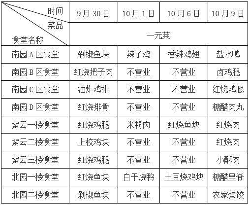 为保障国庆、中秋期间师生就餐需求,同时营造节日氛围,现将食堂营业调整及让利优惠活动相关事宜通知如下: