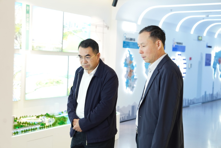 期间,蔡国军一行实地参观企业文化展厅、“书香建工”阅览室,详细了解集团发展历程和重大科技成果转化情况。