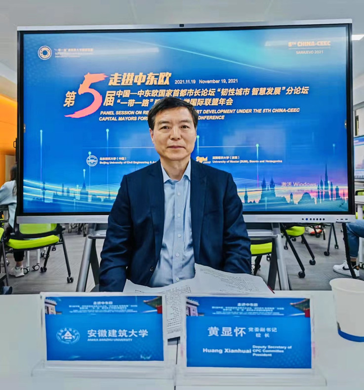 本网讯 11月19日,第五届中国—中东欧国家首都市长论坛“韧性城市 智慧发展”分论坛暨第五届“一带一路”建筑类大学国际联盟年会以“云会议”形式召开。此次会议由北京建筑大学与波黑莫斯塔尔大学联合承办,来自中国、英国、俄罗斯、意大利等15个国家39所高校与机构的200多名代表参加会议。作为“一带一路”建筑类大学国际联盟的发起成员单位,我校党委副书记、校长黄显怀、副校长闵杰出席了本次会议,国际交流合作处全体人员及“2021国际大学生建筑设计与数字建模竞赛”参赛师生代表参加会议。