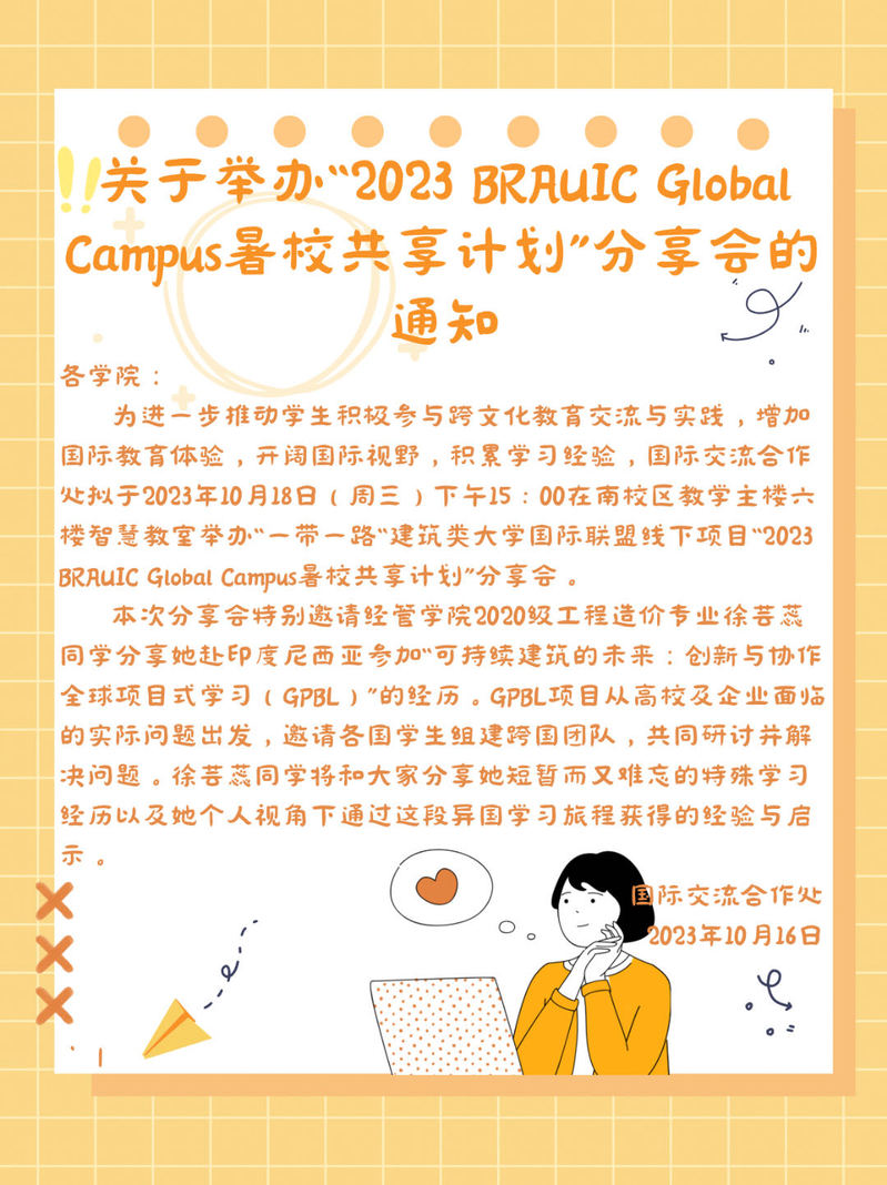 关于举办“2023 BRAUIC Global Campus暑校共享计划”分享会的通知