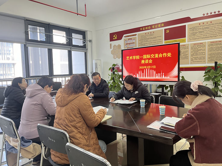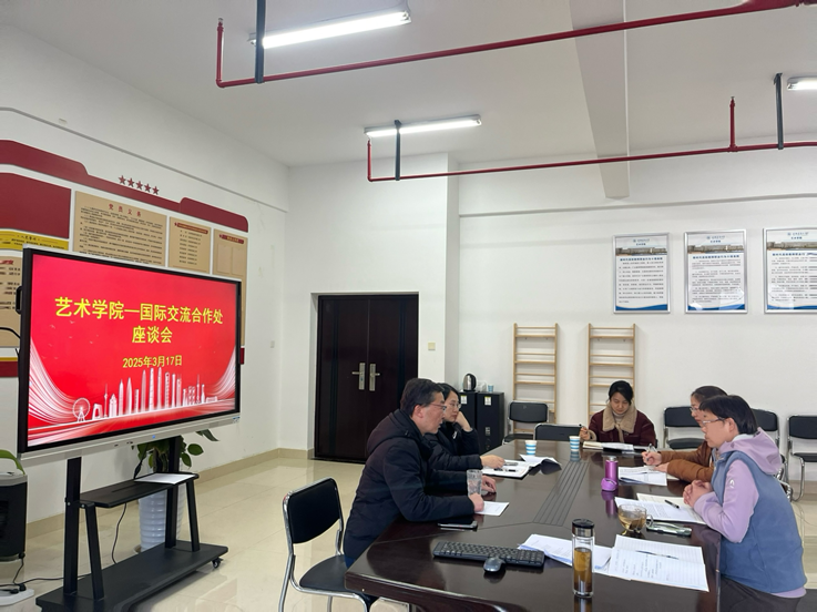 本网讯 3 月 17 日下午,我校中外合作办学项目建设座谈会在徽韵楼四楼艺术学院会议室召开。国际交流合作处和艺术学院的相关负责人以及相关教师参加座谈。