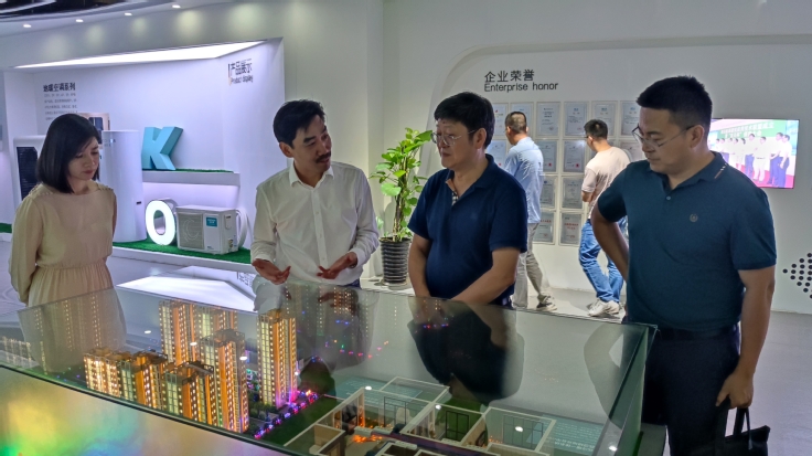 方潜生教授一行在杜贤平董事长的引导下参观了科希曼公司展厅及研发中心,对科希曼公司在空气源热泵供暖等专利产品研发创新、业务发展、示范应用等方面的成绩进行深入了解并予以充分肯定。