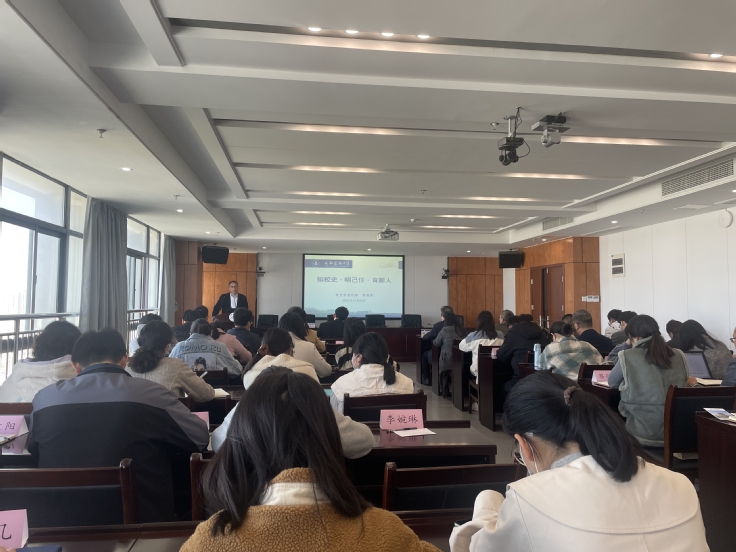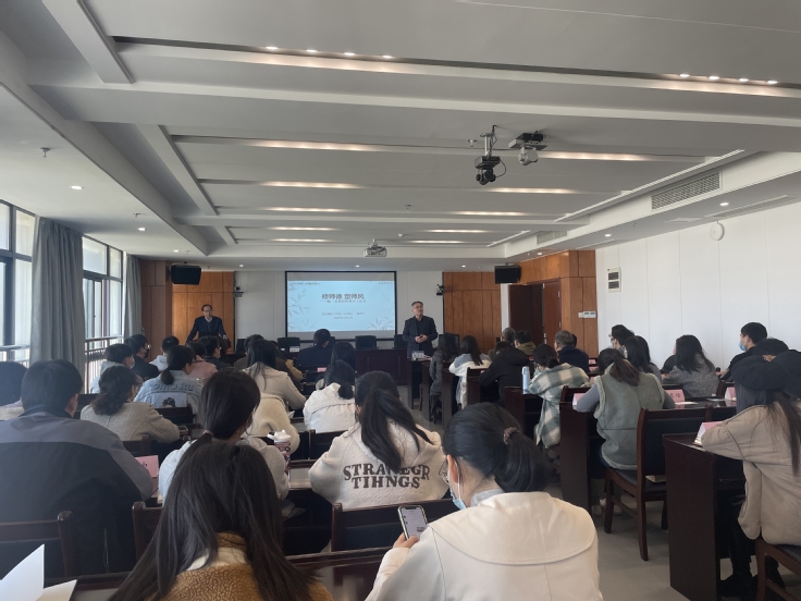 在第二阶段校本培训中,人事处处长潘和平围绕“修师德、塑师风——做一名称职的教育工作者”这一主题,为新入职教师作了首场校本培训讲座。潘和平将相关政策给各位新入职教师予以解读,同时指出教师是立校之本、兴校之源,要强化意识形态教育、提升师德师风素养,提高站位,做好为学为事为人的示范。