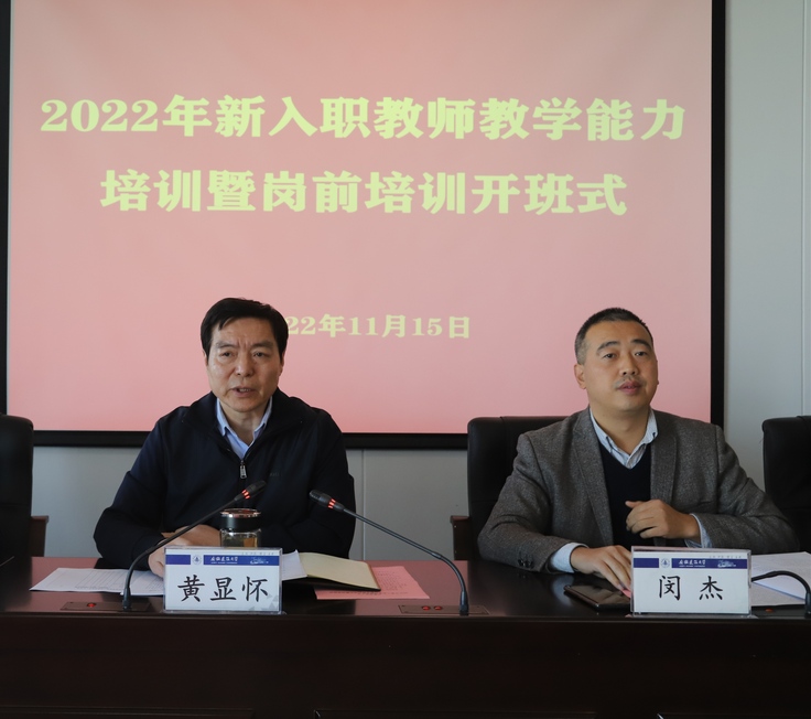 黄显怀首先代表学校对新入职教师表示热烈欢迎,对学校当前将要开始博士生教育,正处在进一步上水平、提质量的关键发展时期作简要介绍。他从学校人才需求、学生培养、教师能力提升等三方面,强调了加强学校教师队伍建设、增强师德师风建设、开展新入职教师教学能力培训暨岗前培训的重要意义。对老师们提出了“既要做到仰望星空,也要能够脚踏实地”的期望。从青年教师成长规律出发他要求全体新入职教师要有饱满的热情和高度的责任感,要志存高远、胸怀大格局;要加强教学科研能力建设;要努力寻找开拓对外交流、合作的机会和平台;要立足长远发展,着眼奉献学校。最后,他预祝所有参加培训的新入职教师能够顺利结业,收获满满。