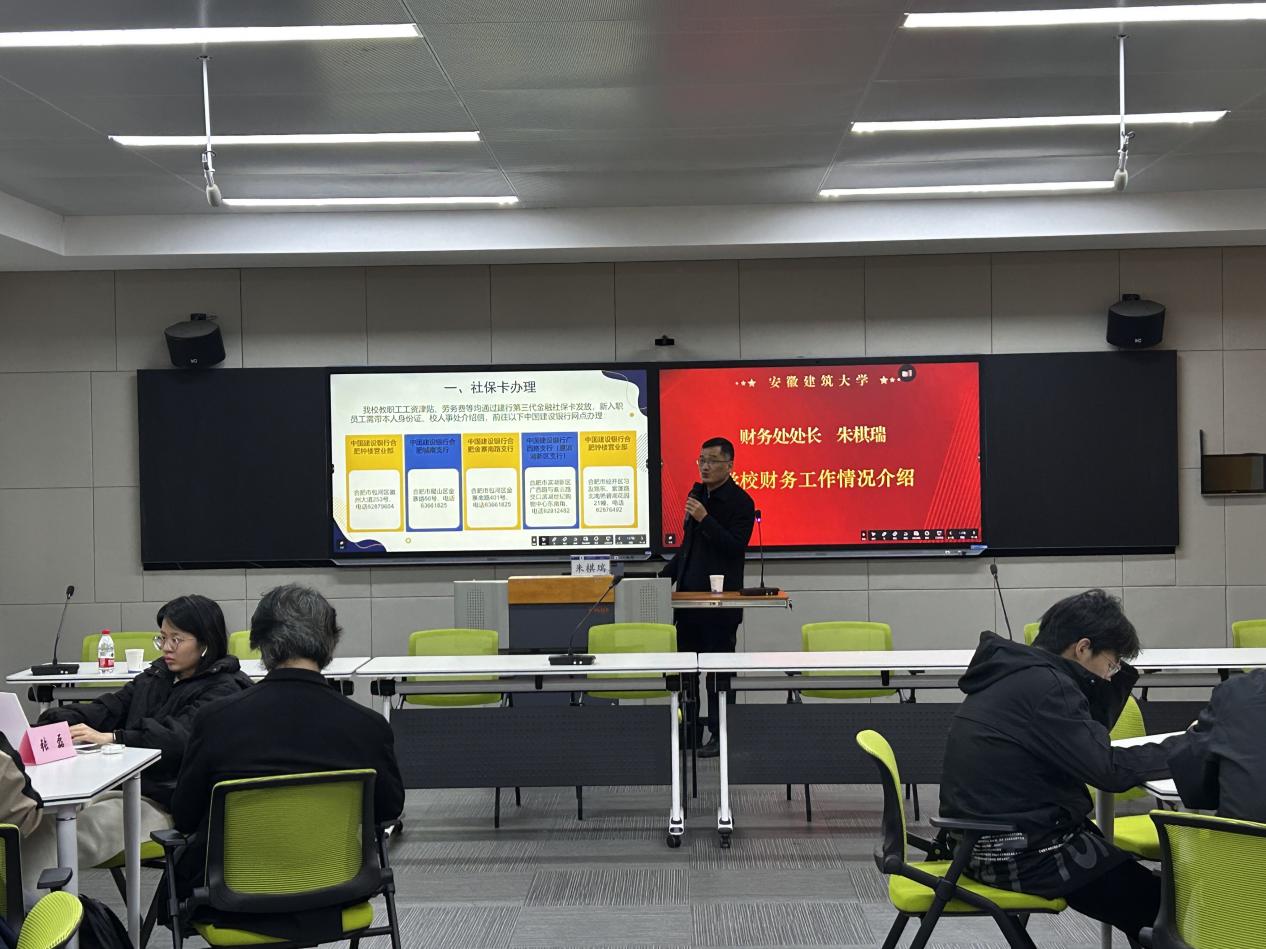 财务处处长朱棋瑞作了题为“学校财务工作情况介绍”的第二场校本培训讲座。他通过讲述社保卡办理、校园卡办理、公务卡的办理和使用、工资查询、个人所得税、学校财务规章制度等让新入职教师进一步了解学校财务相关规定和制度,并针对性为大家解读报销程序和报销注意事项。最后朱棋瑞处长现场解答了新入职教师在报销中遇到的问题,给出了针对性的解决办法,体现学校财务处以人为本、服务至上,以财务服务赋能学校高质量发展的理念。