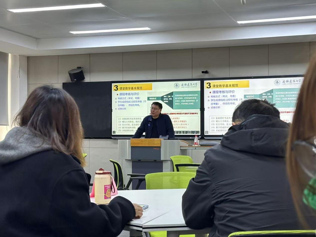 本网讯 2024年12月9日上午,2024年新入职教师第二次校本培训在徽学楼6楼教师教学发展培训中心举行。本次培训由教师发展中心主任段宗志主持,由教务处(招生办、创新创业学院)处长马巍和校纪委副书记、纪委办公室主任张兆许主讲。