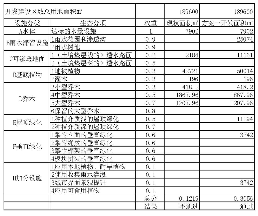 GSF是依据其生态系统服务效能高地,赋予相应的权重因子进行综合定量评估,并通过设定项目建成后场地相应绿色基础设施的最低指标下限来约束场地的开发行为,以实现促进绿色基础设施应用,提升场地生态系统服务水平的目的。