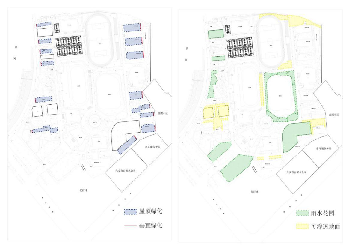 首先,将绿色基础设施分类为:水体、雨水滞留设施、可渗透地面、基底植物、乔木、屋顶绿化、垂直绿化等,另设置一些加分设施灵活配置。