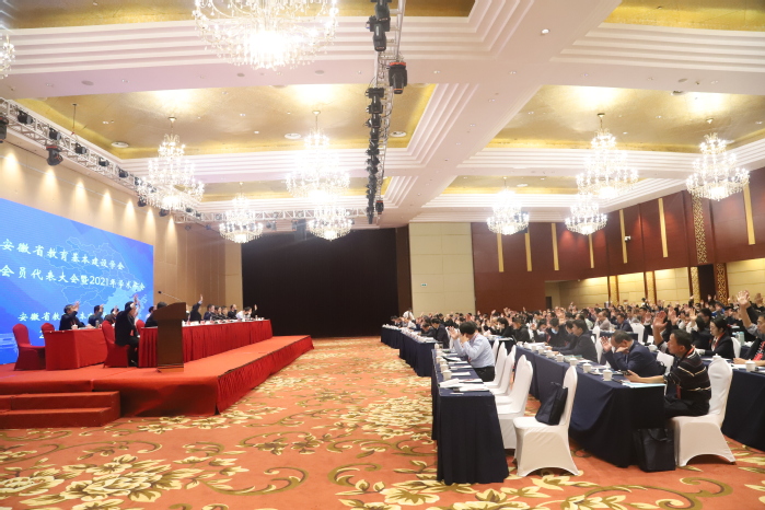 选举会议由安徽省教育厅人事处二级调研员曹玉建同志主持,会员大会选举通过了143名理事和3名监事。六届一次理事会选举了43名常务理事、理事长、副理事长,监事会主席、副主席;六届一次理事会还根据理事长提名投票选举了秘书长,并通过了秘书长题名的3名副秘书长。随后新任理事长成祖德同志发表了热情洋溢的就职演说。