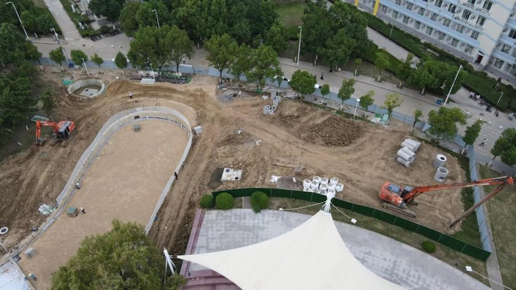 建设过程中,合肥工业大学翡翠湖校区综合办提前协调校内各部门,实地查勘地下管线,明确施工路径,避免因施工不当导致的管线破损等问题。针对该工程点多、面广、监管难度大等特点,翡翠湖校区综合办利用无人机航拍灵活机动、方便快捷、不受地理条件约束、视野宽广的优势,对工程的重点、难点领域开展全覆盖、多角度巡查,确保安全隐患及时发现、及时消除。组织人员定期对施工周边路面进行巡查,及时提醒施工单位清理路面的积水、渣土和淤泥,保证校园安全和环境整洁。目前,翡翠湖校区综合办正在积极联系施工单位,督促对已经施工结束的片区及时进行地面平整和绿化恢复。
